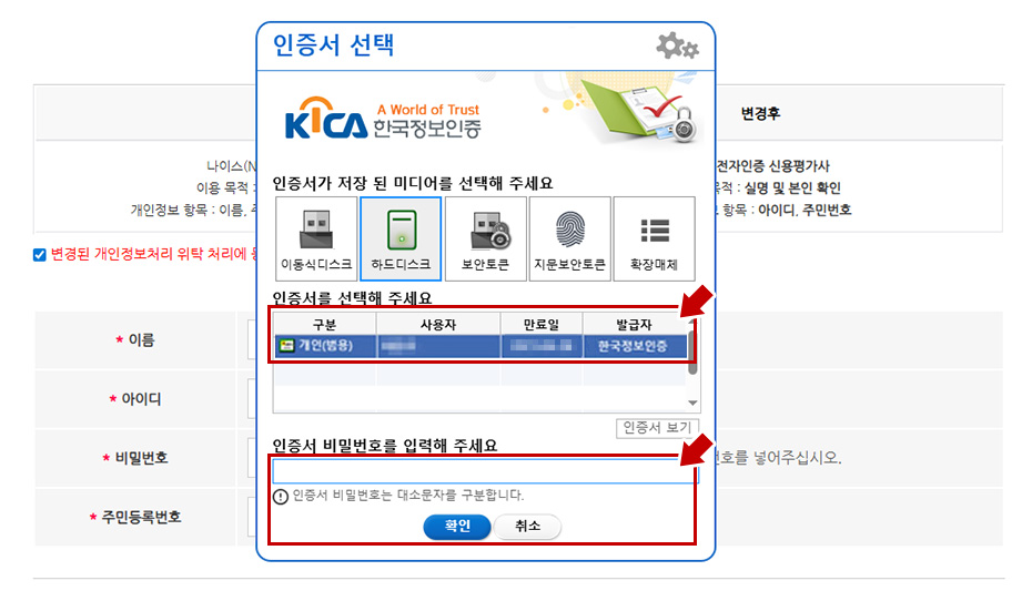한국정보인증 사이트에서 개인범용(1년) 발급