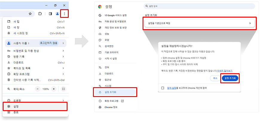 ¨é ¼³Á¤À» ±âº»°ªÀ¸·Î º¹¿ø Ŭ¸¯ ÈÄ, [¼³Á¤ ÃʱâÈ] Ŭ¸¯Çϼ¼¿ä.