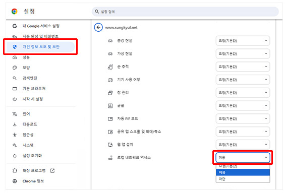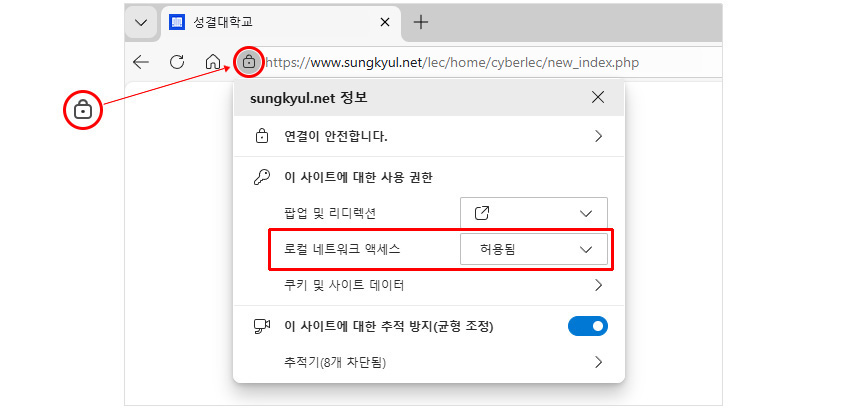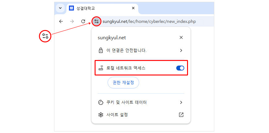 ¨ç ºê¶ó¿ìÀú »ó´Ü ÁÖ¼Òâ ¿ÞÂÊ¿¡ ÀÖ´Â ¾ÆÀÌÄÜÀ» Ŭ¸¯Çϰí, '·ÎÄà ³×Æ®¿öÅ© ¾×¼¼½º' ¿É¼ÇÀ» Çã¿ëÀ¸·Î º¯°æÇØ ÁֽʽÿÀ.