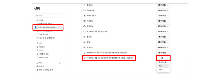 2) ÇÏ´Ü¿¡ '»çÀÌÆ®¿¡¼ ·ÎÄà ³×Æ®¿öÅ©ÀÇ ¸ðµç ÀåÄ¡¿¡ ¿¬°áÇϵµ·Ï ¿äûÇÒ ¼ö ÀÖ½À´Ï´Ù' Ç׸ñÀ» 'Çã¿ë'À¸·Î º¯°æÇØ ÁÖ¼¼¿ä.